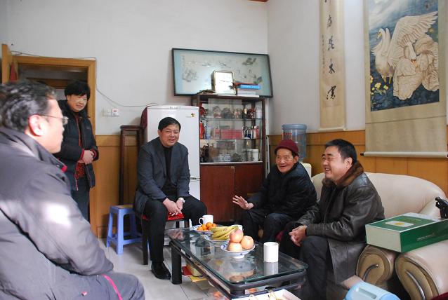在省装置公司杨树起、曹明建、陈怀和家,集团公司总经理、副董事长、党委副书记赵时运仔细询问了他们的生活和身体情况,赵总还看望了省建科院离休老同志范久之,对他们为企业作出的孝敬体现谢谢,并代表集团公司党委提前向他们及全家贺年 。
