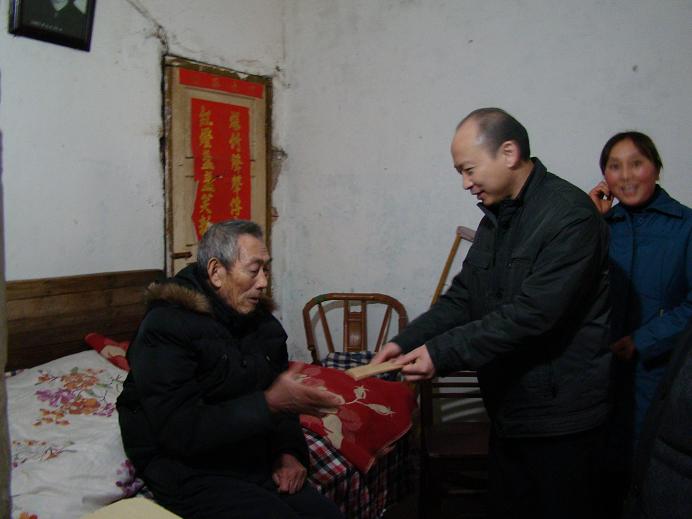 在省水建总公司离休老同志马相家,集团公司董事长、党委书记胡运成与87岁高龄的马老促膝谈心,详细询问他的身体、生活和家庭情况,谢谢他为企业作出的孝敬,并送上新年的祝福 。随后,胡董事长还划分慰问了3户困难职工和困难党员,每到一户都详细地询问他们的身体和生活状况,向他们致以节日的问候,并送上慰问金 。
