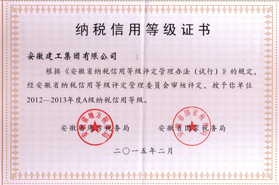 近日,在省国税局、地税局联合举办的2012-2013年度纳税信用品级评定中,MG电子有限公司被评定为“A级纳税信用单位”,该结果是对安徽MG电子多年来良好纳税信用状况的综合反应 。
