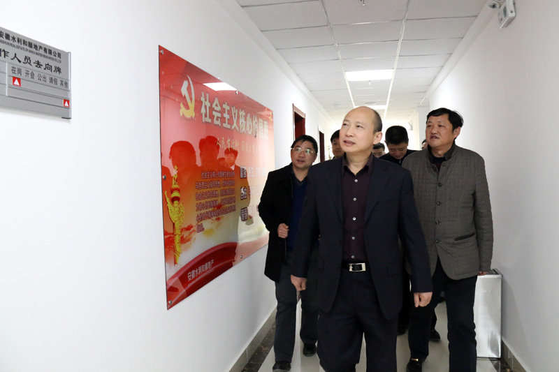 3月14日下午,集团公司党委书记、董事长赵时运到安徽水利温顺地产调研指导事情。集团公司党委委员、副总经理霍向东,安徽水利党委书记、总经理张晓林,安徽水利副总经理赵作平,安建地产副总经理王成民以及集团公司办公室副主任刘春雷等陪同调研。