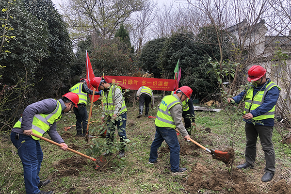 市政分公司团支部组织团员青年在淝河镇席井村开展植树运动。放眼席井村,春山可望,草木萌发,各人或两人一组、或三人一队,挖基坑、拌肥料、扶苗木等环节紧密衔接。一番辛勤的劳作后,20余株香樟树苗在此扎根。