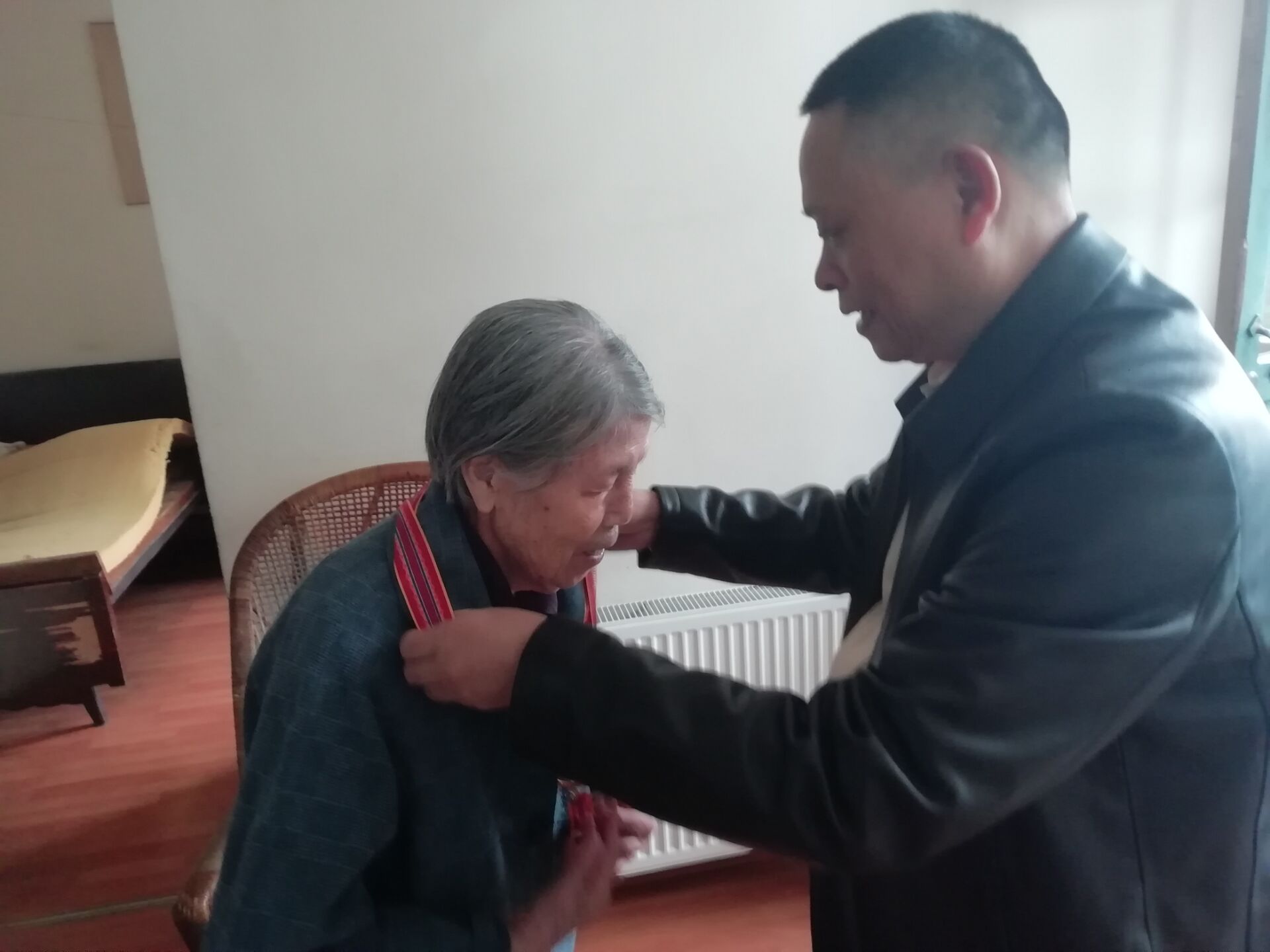 近日,集团机关党委书记、离退休办主任李世龙登门看望慰问了抗美援朝老战士李素云老人,并送上中央今年统一向抗美援朝老战士宣布的“中国人民志愿军抗美援朝出国作战70周年”纪念章。