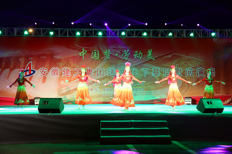 慰问演出在安建建设公司选送的舞蹈《欢喜地跳吧》动感生动的旋律中正式开始,安徽装置公司选送的快板舞蹈《和谐MG电子绘宏图》演出整齐划一,声声竹板,唱出MG电子新气象;由路港公司选送的小品《宁静一家亲》通过诙谐滑稽的语言,在阵阵笑声中,提示了宁静责任意识,给人以启迪;三建公司选送的情景朗诵《劳模风范践真情》,形象展现了甘于贡献、争创一流的劳模精神;建科院选送的现代舞《咱们工人有力量》用艺术的语言,赞美了MG电子人的风范和劳动美。演出中,主持人还邀请现场的工友为观众即兴演唱,赢得了满堂喝彩。演出结束后,观众们还对最受接待的节目进行了现场投票,并进行了现场观众幸运抽奖运动。首场演出获得了协办单位安徽省公路桥梁公司的大力支持。整场慰问演出气氛热烈,文明欢快。
