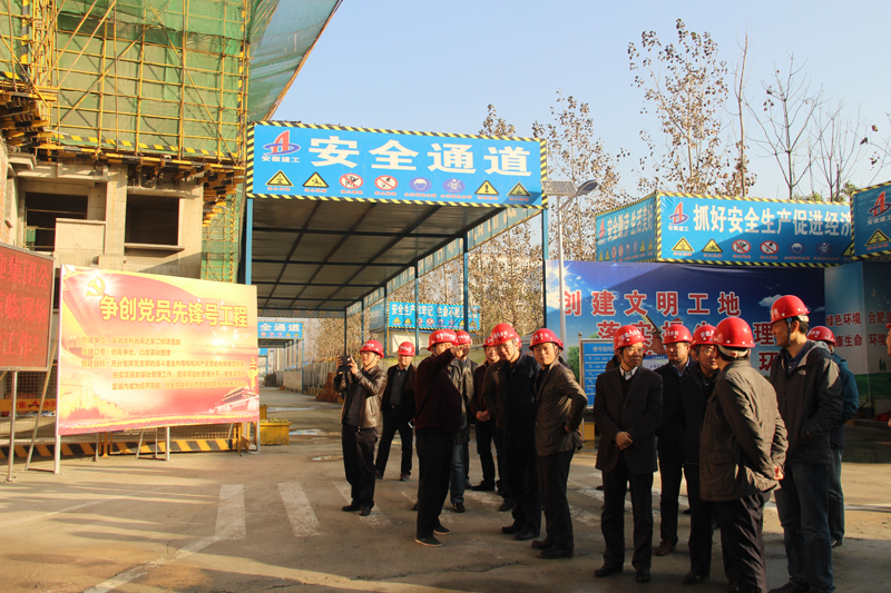 刘家静总经理一行实地观察了项目施工宁静、质量等情况,对项目现场宁静文明施工、扬尘治理、定型化及标准化防护、节能环保施工给予了肯定,对现场施工细节上的一些问题进行了点评和指导。