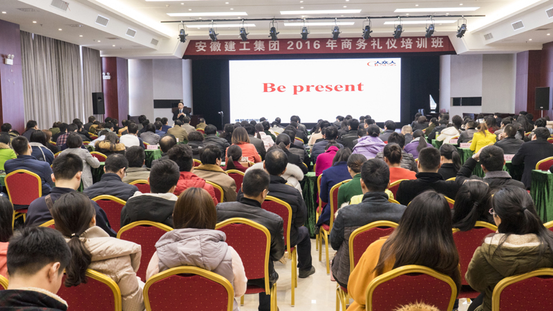 1222下午,集团公司人力资源部在安建大厦三楼集会室,举办了2016年MG电子商务礼仪培训班,集团机关及所属单位共350余人加入了培训。
