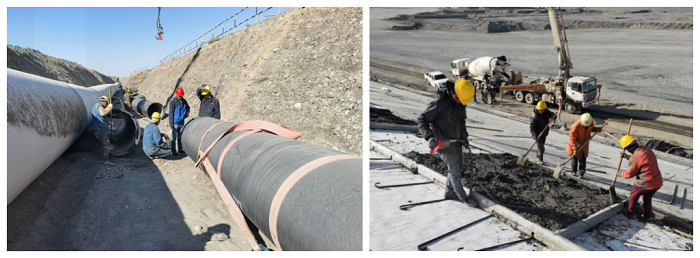 截至目前,乌苏市供水改扩建调理蓄水池工程调理蓄水池坝体工程已全面完成,引水暗涵已完成3.3㎞,启闭机室已完成,导洪堤已完成,东坝土工膜已完成,东坝面板已浇筑6层,北坝和西坝护脚伸缩节已完成,DN2000放空管道装置完成515m,DN800放空管道装置完成162m,DN1000供水管道装置完成532m,完成产值约11330万元,蓄水池项目施工取得阶段性胜利。