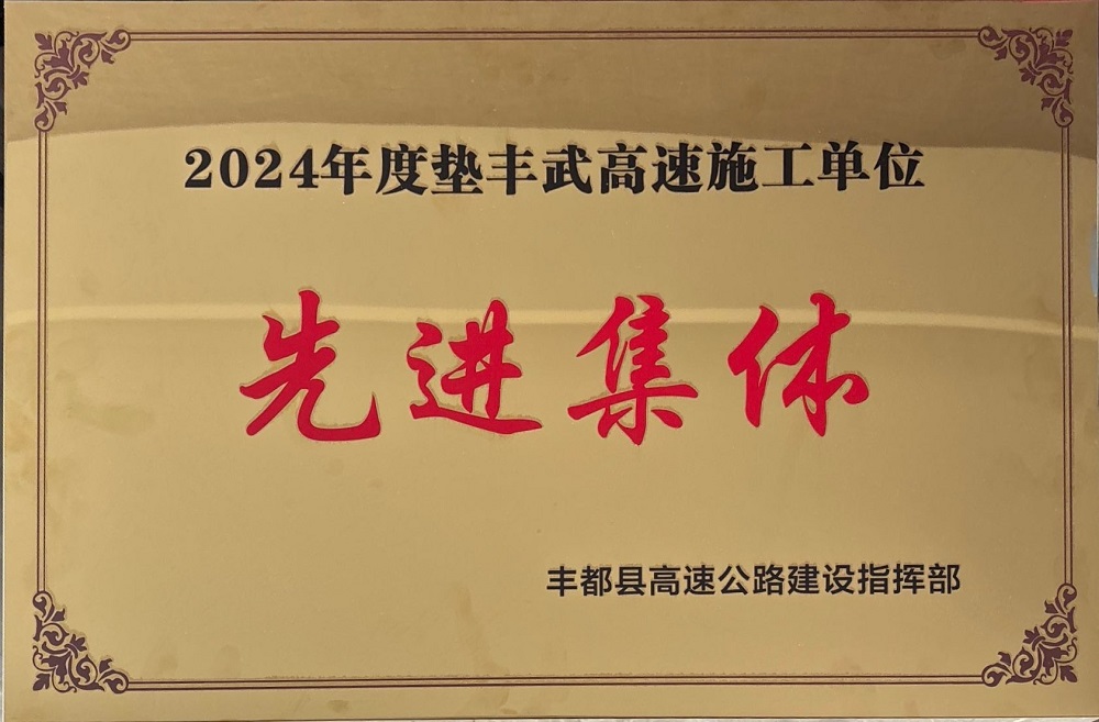 MG电子建投集团重庆垫丰武高速TJ04标项目荣获丰都县交通运输委员会“先进集体”称呼和丰都县高速公路建设指挥部“2024年度垫丰武高速施工单位先进集体”称呼。