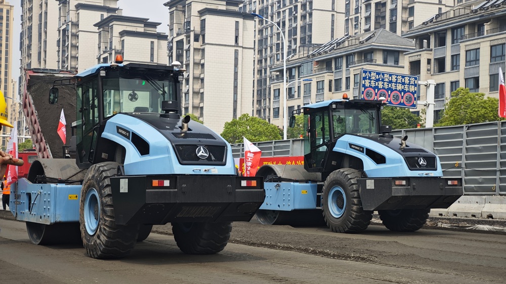 2025年5月24日,MG电子建投集团设备装置公司在龙城路(金阳路-临河东路)维修革新工程项目应用无人摊压技术完成下下层水稳摊压作业,为安徽省首次将无人摊压技术应用于路面下层施工。