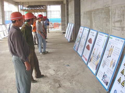 近日 ,安徽一建在“宁静生产月”运动中 ,组织开展了“宁静生产月”主题口号签字运动、悬挂主题宣传口号口号、购置宁静宣传质料、出宁静知识板报、组织加入“宁静伴我行”知识竞赛和宁静漫画展运动 。图为施工现场人员寓目以宁静漫画为主要形式的宁静文化展览 。
