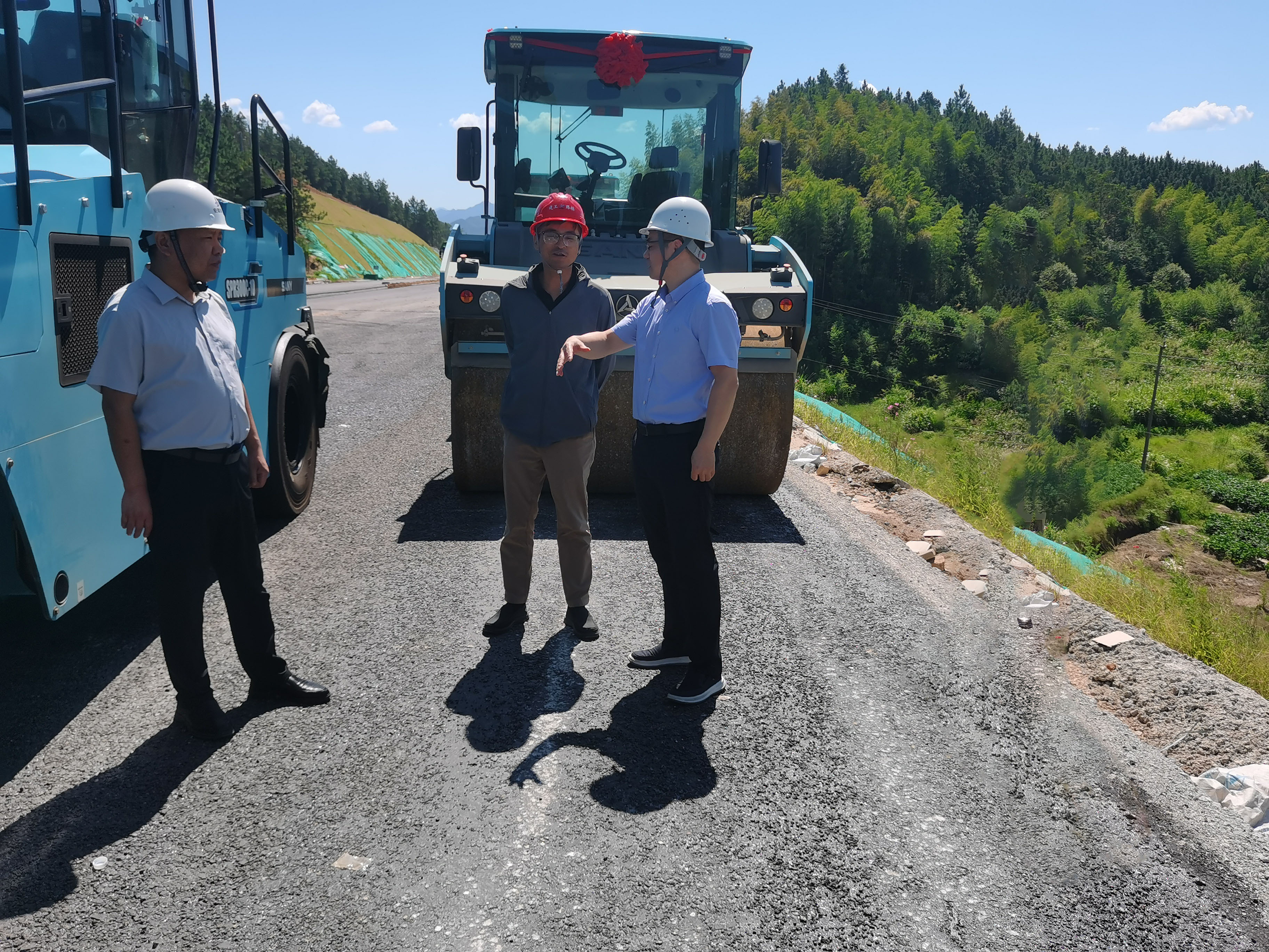 8月28日,公司党委副书记、董事、总经理张鑫带队赴MG电子路桥宣泾高速项目调研无人摊铺机群作业业务。