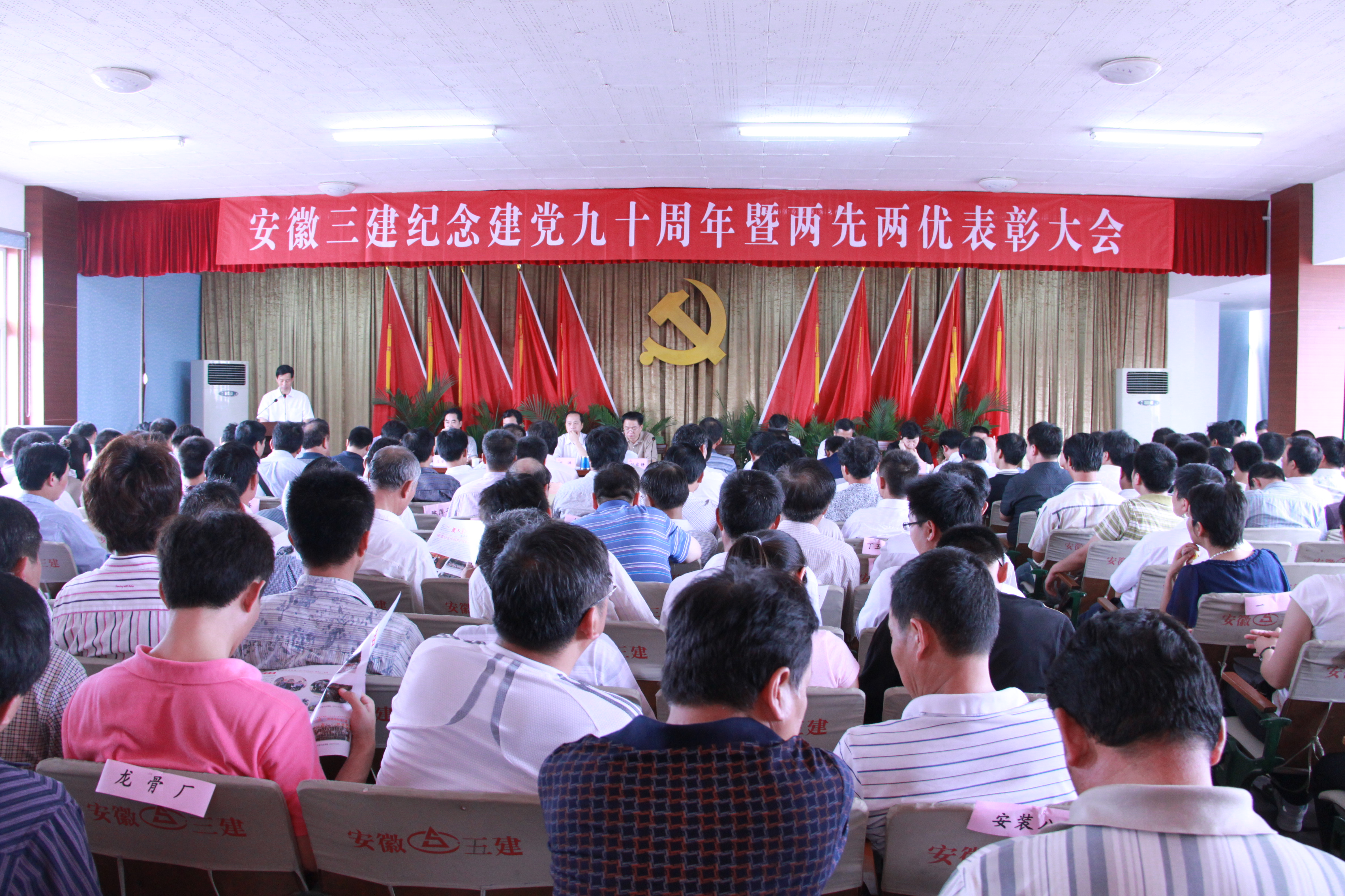 6月30日下午,安徽三建公司隆重召开纪念建党九十周年暨“两先两优”表扬大会,下层单位党员代表等200余人出席大会。
