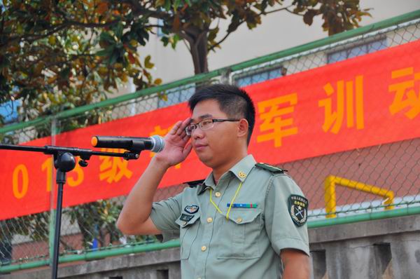 党委书记钱森林同志为新生军训作发动报告。他代表院党委和学院教职工向全体新生体现热烈接待和亲切的问候!并向大力支持我院新生军训事情的全体教官体现衷心的谢谢!钱书记希望同学们要以饱满的热情、顽强的毅力、威武的军姿、强烈的团队精神,来展示我院2013级新生的青春活力和挑战自我、高昂向上的精神风貌,为自己的学习生活和整个人生历程增添一页激扬的华彩篇章,同时并对所有参训同学提出几点要求:要深刻认识军训的重大意义,以极大的热情和严以律己的态度投入到军训;要发挥艰苦斗争作风,磨炼优良意志和品质;要严守训练纪律,一切行入耳从指挥;要尊重教官,虚心学习;要强化集体荣誉感,培养优良团队精神。