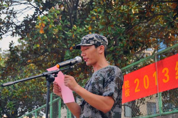 本次发动大会正式拉开了2013级学生军训的帷幕。在为期9天的军训中,我院2013级全体新生同学将在教官的领导下认真学习各项军事技术和国防知识,在提高军事素养的同时,进一步锤炼自己的身体素质和意志品质。