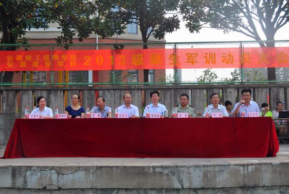 8月28日上午9点,安徽MG电子技师学院在学院操场举行2013级新生军训发动大会。学院党委书记钱森林、副院长吕良玉、学生随处长付书亭、守卫随处长胡频、授训步队首长杨振、建筑工程系党支部书记李波、建筑经济治理系党支部书记李继萍、机电工程系党支部书记朱晓玲及所有班主任和2013级全体新生加入了此次发动大会。大会由付书亭处长主持。